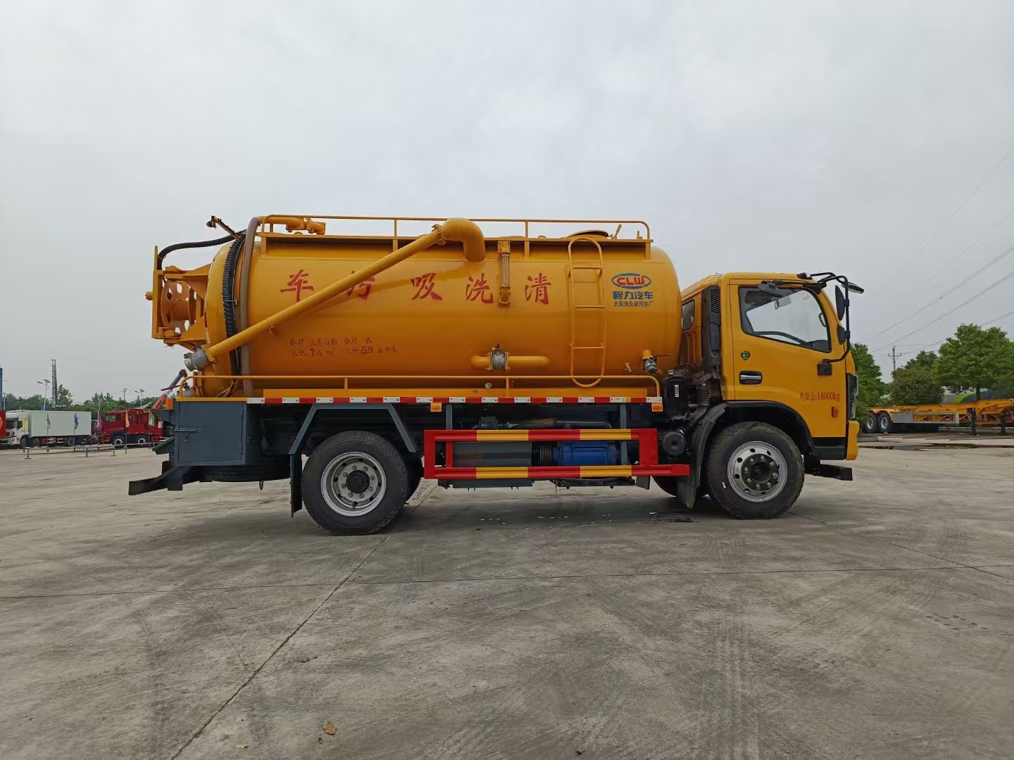 ??????湖北程力汽車:東風大多利卡重載底盤11.5立方一體罐清洗吸污車產品型號及參數配置,東風大多利卡重載底盤11.5立方一體罐清洗吸污車高清圖片,程力汽車系列東風大多利卡重載底盤11.5立方一體罐清洗吸污車最新報價請撥打客服熱線。車輛主要配置 產品商標 程力牌 公告批次 377(擴展) 產品名稱 清洗吸污車 產品型號 CL5141GQW6CC 總質量(Kg) 14060 罐體容積(m3) 7.43 額定載質量(Kg) 5865 外形尺寸(mm) 735023803100,3200 整備質量(Kg) 8000...