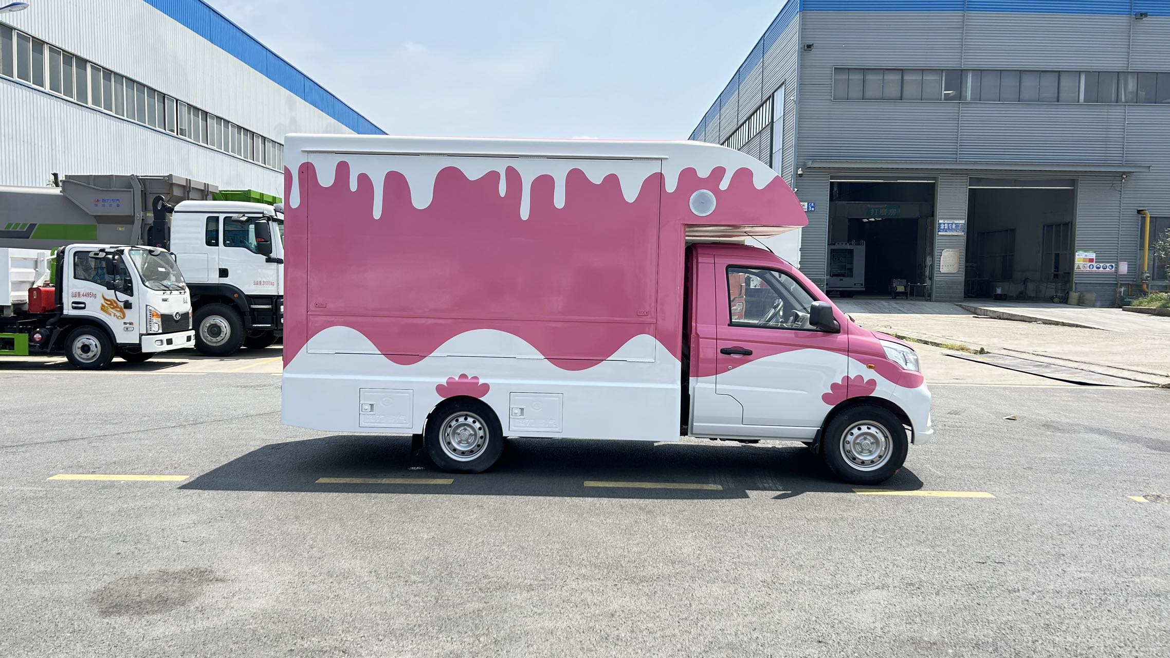 | 上裝配置 | 1,箱體材質(zhì):矩形方管骨架,冷板蒙皮結(jié)構(gòu),翻板采用內(nèi)外彩鋼板,中間高性能保溫板,側(cè)板整體復合,輕量化,保溫隔熱。整體車身顏色為白色,可定制車身各種顏色彩條拉花,或各種噴涂樣式,(選裝內(nèi)部不銹鋼飾面板) 2,箱體結(jié)構(gòu): (1)箱體鴨嘴額頭設(shè)計,帶儲物功能。 (2)箱體兩側(cè)上翻板,帶下翻吧臺。 (3)地板為防滑鋁花紋板,箱體裙邊包圍,帶檢修艙門,工具柜。 | ||